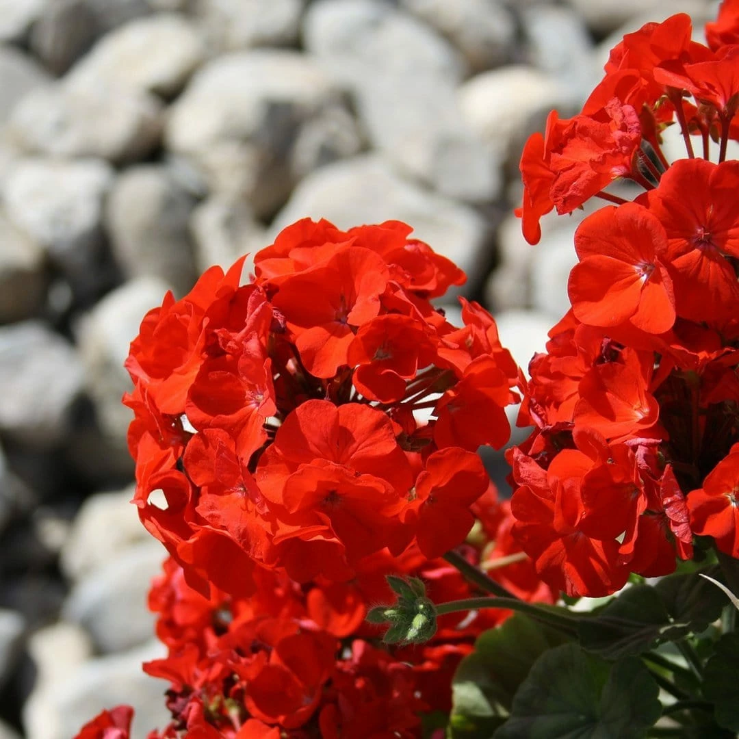 - A mix of deep and vibrant red Geraniums