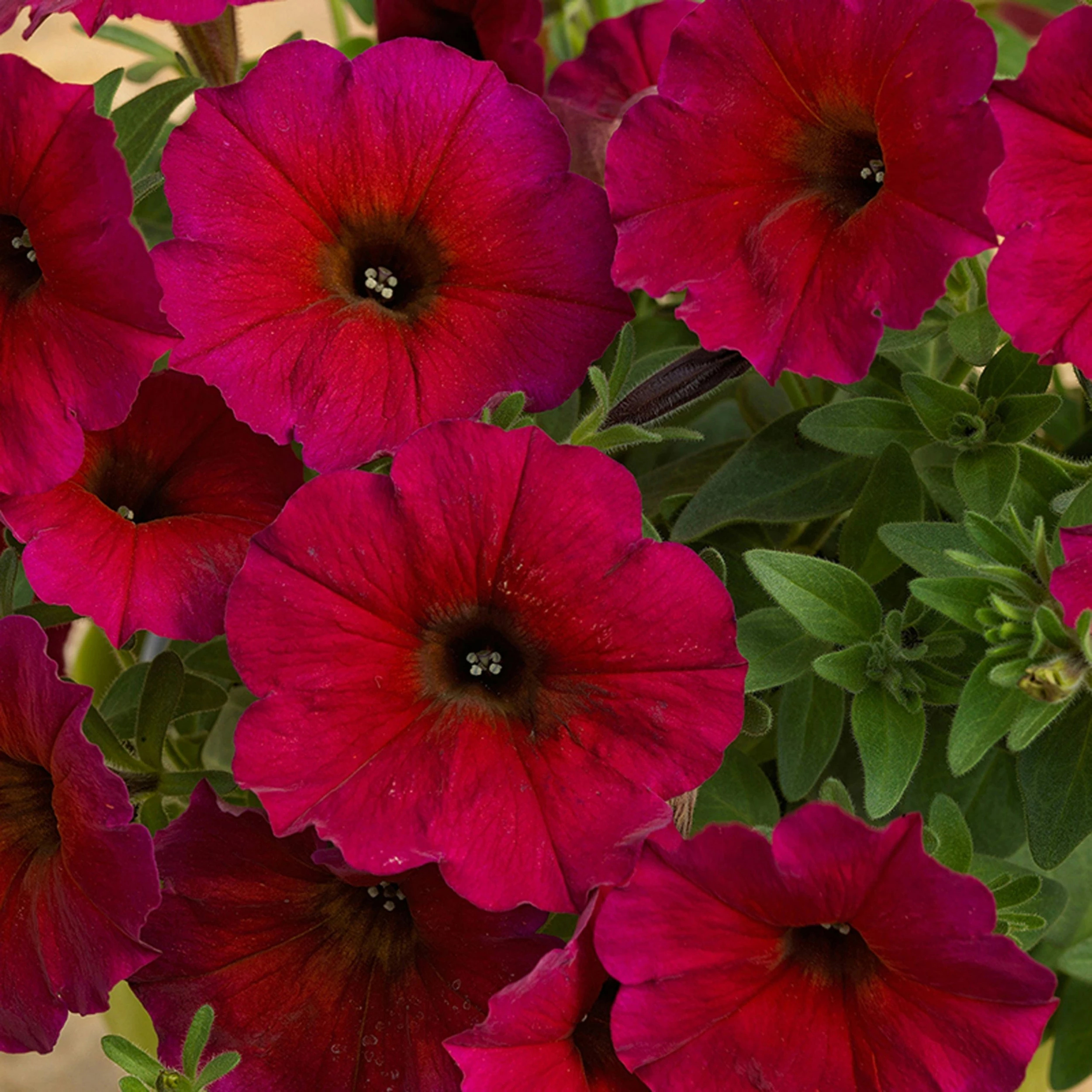- This hybrid of Calibrachoa and Petunia has the best of both plants in a luscious velvety wine-red with a black centre